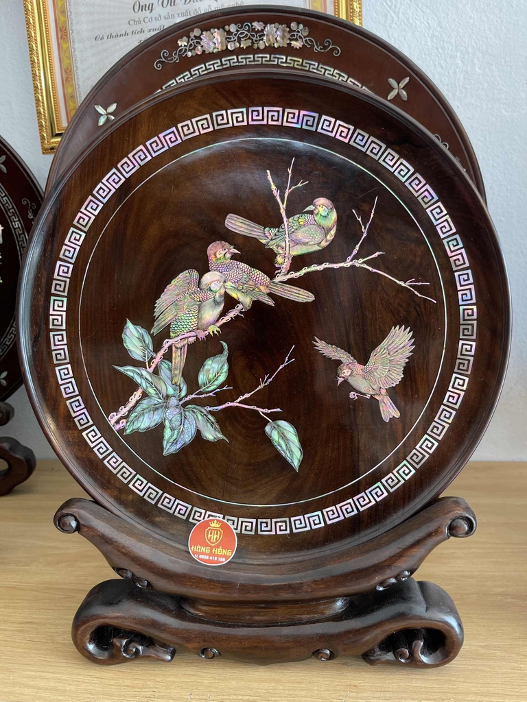Đĩa gỗ trắc khảm ốc đỏ cao cấp